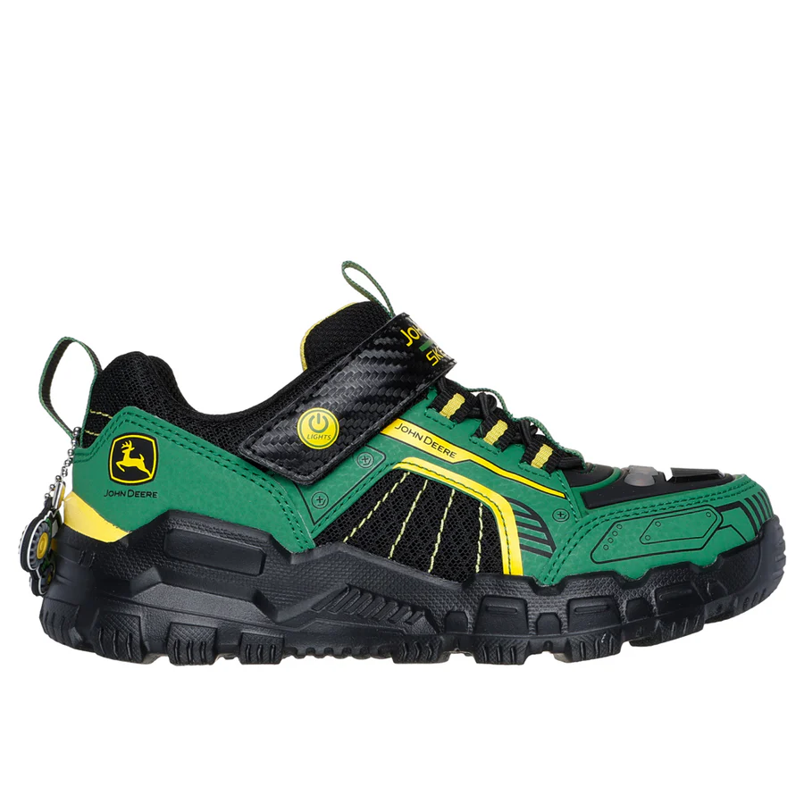 Elevate his outdoor excursions with Skechers x John Deere: Adventure Track – Rugged-Brights! This lighted sneaker boasts a John Deere-inspired design, with a durable synthetic and mesh upper and stretch laces for a secure fit. The Skechers Adaptive Closure system ensures a personalized, comfortable fit, while the cushioned insole delivers lasting comfort.