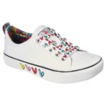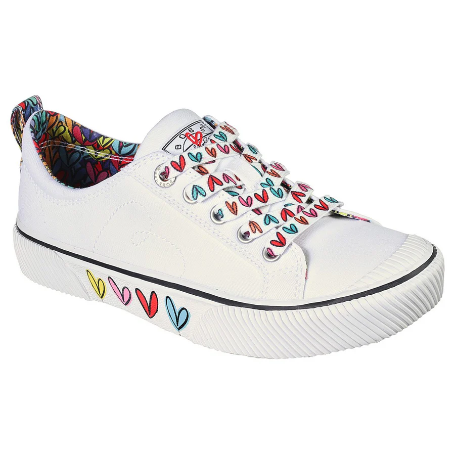 Internationally renowned muralist James Goldcrown brings his iconic #Lovewall heart designs to Skechers in this inspiring collaboration. Art and love makes the perfect pair in the Skechers x JGoldcrown: BOBSĀ® from Skechers B Wild – Love Only shoe. This sneaker features the artist’s signature design on the laces and midsole with a lace-up canvas upper and cushioned Memory Foam insole.