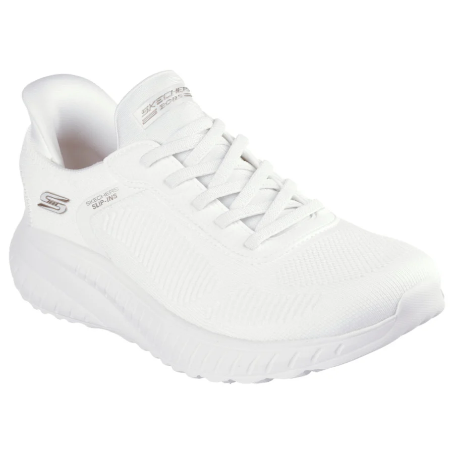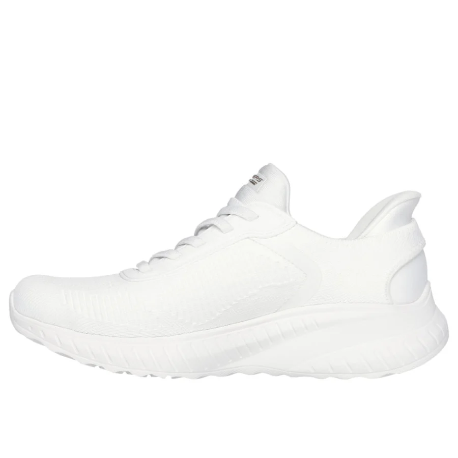 Step into athletic style and comfort wearing Skechers Hands Free Slip-ins®: BOBS Sportâ„¢ Squad Chaos – Current Muse. Designed with our Exclusive Heel Pillowâ„¢, this fashion style features an engineered knit upper with stretch laces and a cushioned Skechers Memory Foamâ„¢ insole.